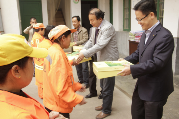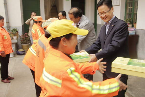 随着冬季临近,为城市环境奋战在马路一线的环卫工再次成为社会关注焦点。10月21日,在环卫工人节来临之际,县委常委、政法委书记董文兵与县委常委、宣传部部长冯志兴一行到县环卫站,为105名环卫工人每人送去了一件保暖衣,表达对保洁人员的关爱之情。