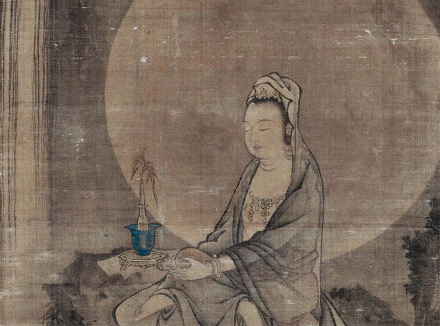 颜辉,人称老画师,宋末元初人。擅长画道教和佛教人物,笔法粗厚,钩勒粗细皆宜,起伏有致,渲染精到,以水墨烘晕,使画面衬托出阴暗凹凸,富有立体感,有“笔法奇绝,八面生意”之称,这是一种前无古人的创新画法,柳贯(元代著名文学家、诗人、哲学家、教育家、书画家)赞之为“收揽奇怪一笔摸”,与梁楷、法常一脉相承。颜辉的作品流传日本较多,对日本室町时代的绘画有较大影响。传世作品有故宫博物院收藏的《水月观音图》轴、《李仙图》,河南省博物馆藏的《山水图》轴,日本京都智恩院藏的《李铁拐图》轴。 8、颜宗(1393一1459)